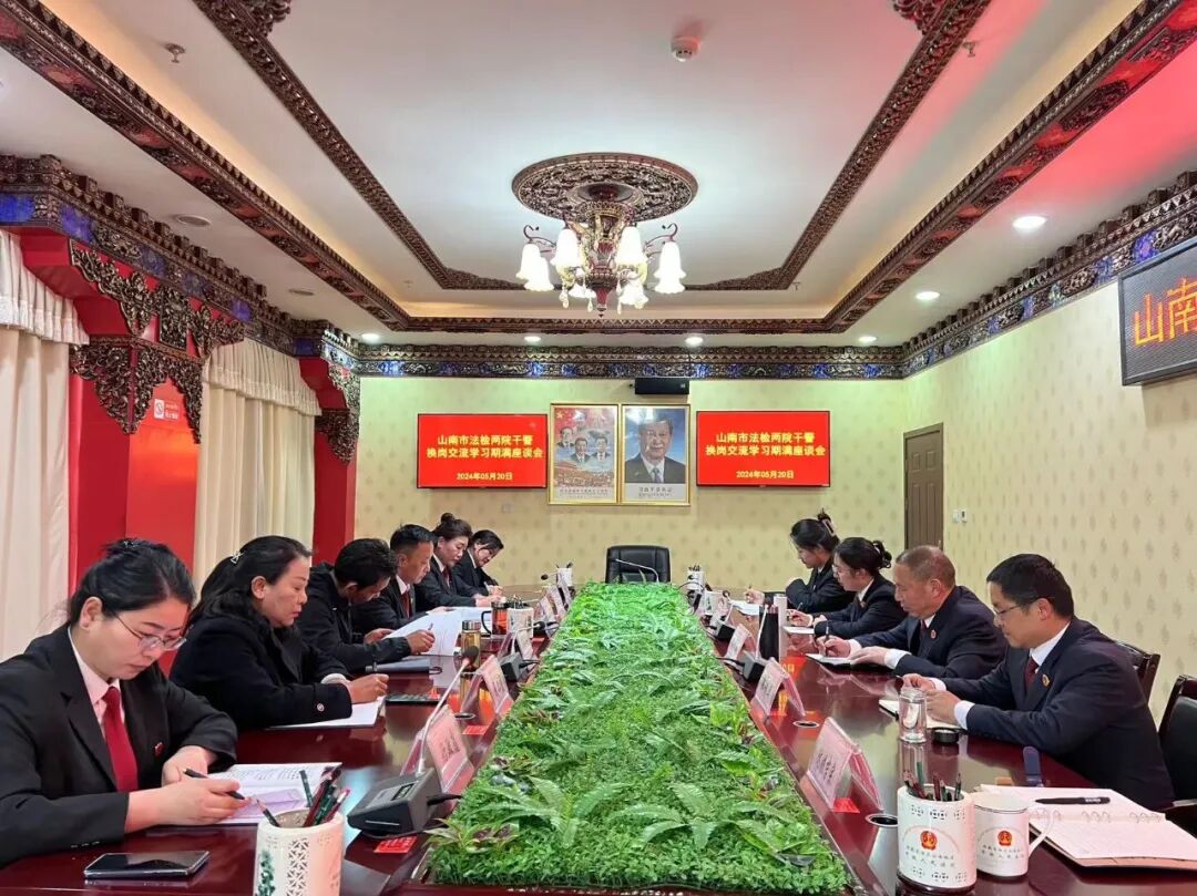 近日,山南市中级人民法院、市人民检察院召开互派干警换岗交流学习期满座谈会。市中级人民法院党组成员、副院长索朗全旦,市人民检察院党组成员、副检察长蒋光全出席会议并讲话。市中级人民法院民事审判第一庭、民事审判第二庭、行政审判庭、审判监督庭相关负责同志和市人民检察院第四检察部全体人员参加会议。