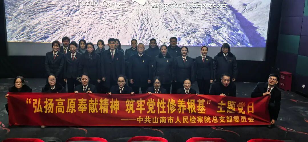 为深入学习贯彻习近平总书记关于西藏工作的重要指示精神,大力弘扬“老西藏精神”,铸牢中华民族共同体意识,12月22日山南市检察院党总支以“弘扬高原奉献精神 筑牢党性修养根基”为主题,组织全体党员集中观看电影《遥远的普若岗日》,以沉浸式“电影党课”淬炼党性、凝聚奋进力量。