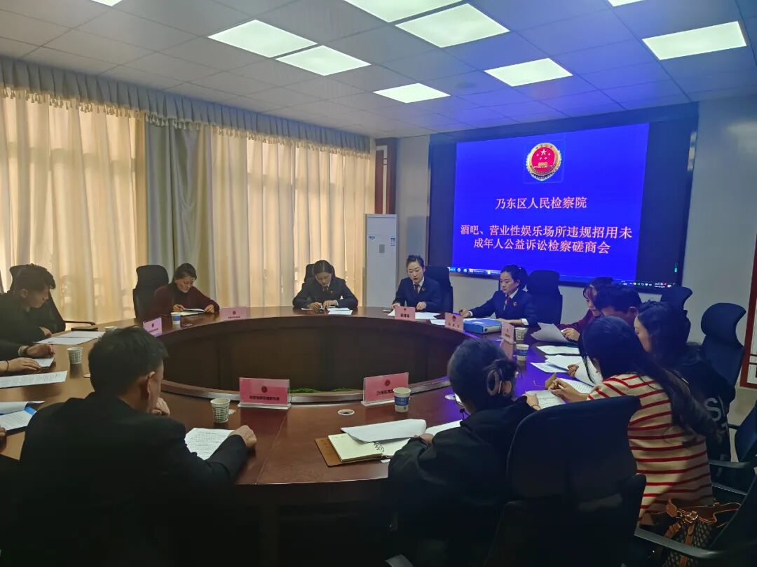 为全面保护未成年人合法权益,乃东区人民检察院通过综合履职将本案立为涉未成年人行政公益诉讼案件调查,并于2023年10月9日上午邀请市文化局、区人力资源和社会保障局、区文化局、区民政局、团区委,部分娱乐场所经营人就辖区内娱乐场所违法招用未成年人问题进行磋商。