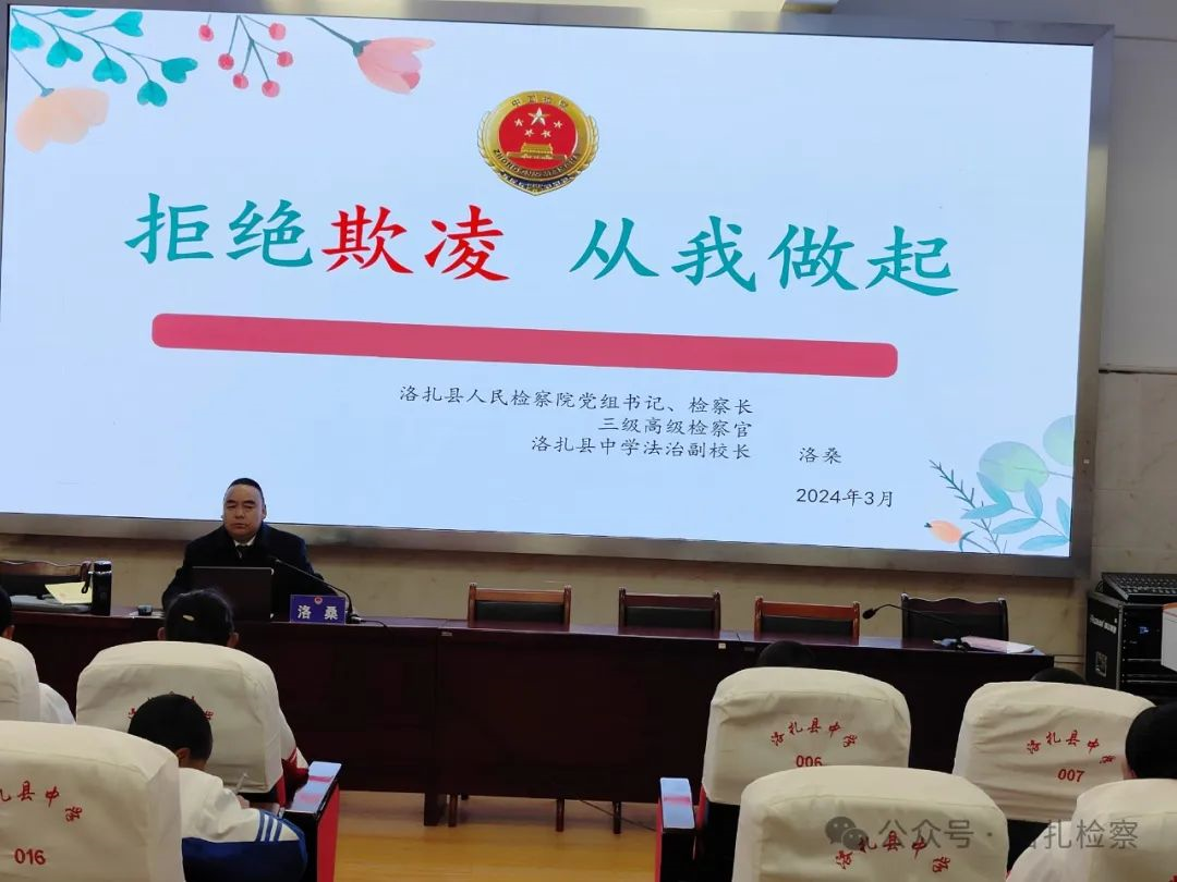 3月19日,洛扎县人民检察院前往洛扎县中学开展法治宣传进校园暨铸牢中华民族共同体意识宣传活动。检察官对铸牢中华民族共同体意识的重大意义进行讲解,通过穿插真实案例、播放电影《第二十条》片段和现场互动等方式,为师生们送上一堂“拒绝欺凌、从我做起”为主题的法治讲座。