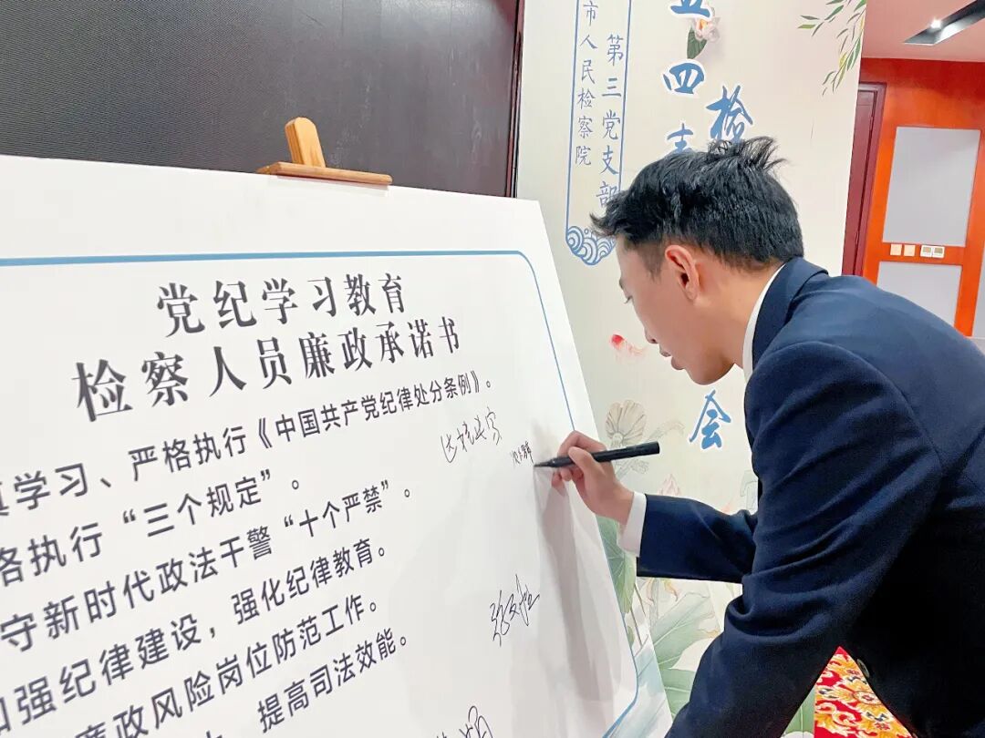 4月30日,市检察院党总支组织各支部召开青年干警学习交流座谈会。各支部以“可为岗位争做有为青年”和“以青春之名·话青春之志”等为主题,让青年干警从不同角度谈思想、谈工作、谈体会、谈打算、谈建议;并组织青年干警集中观看警示教育片《传承》和签订《党纪学习教育检察人员廉政承诺书》。