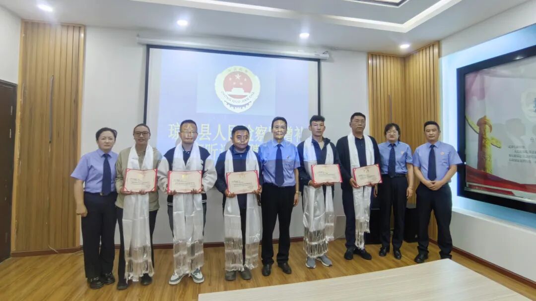7月3日,琼结县人民检察院举行增补听证员聘任仪式,县人大法制委工作人员及来自各行各业的7名听证员受邀参加会议。会上,宣读《关于聘任旦增曲扎等7名同志为琼结县人民检察院听证员的决定》《人民检察院审查案件听证工作规定》《人民检察院听证员库建设管理指导意见》等文件。随后,为听证员颁发了聘书,并带领听证员参观了检察听证室。