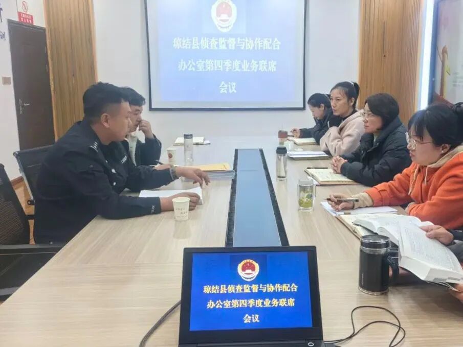 11月19日,琼结县侦查监督与协作配合办公室召开第四季度业务联席会议,琼结县人民检察院检察业务部干警及县公安局刑警大队民警参加会议。会上,检警双方就公安机关近期正在侦办的刑事案件进行分析讨论,对案件事实认定、法律适用、证据采集和固定等进行讨论交流,并就今后优化侦查监督与协作配合工作平台进行意见交换。