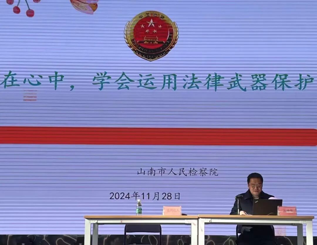 法治同行、护航成长。为进一步加强校园法治教育,规范学生日常行为,切实保障广大师生财产安全、提升广大师生反诈防骗意识,营造“学法、懂法、守法、用法”的良好校园氛围。11月28、29日,山南市人民检察院法治副校长在山南市第二职业学校和森布日中学开展了法治教育讲座,全校师生参加了宣讲活动。