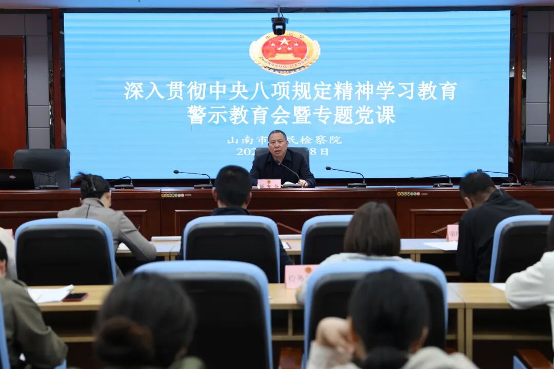 随后,蒋光全同志以《提升规范意识和能力,确保检察权依法正确行使》为题,为全体检察干警讲授了一堂生动深刻的专题党课。从中央八项规定和《人民检察院司法责任追究条例》出台的背景、重要意义以及在检察工作中贯彻落实等方面进行了详细的阐述。他强调,一是全体检察干警提高政治站位,充分认识到中央八项规定精神是长期有效铁规矩、硬杠杠,必须从思想上高度重视,行动上坚决落实。二是在日常工作和生活中,要严格遵守各项纪律规定,自觉抵制各种诱惑,做到心有所畏、言有所戒、行有所止。同时,要结合检察工作实际,将中央八项规定精神和《人民检察院司法责任追究条例》落实到案件办理、法律监督、队伍建设等各环节,切实做到公正司法、廉洁自律、维护检察机关良好的形象。三是要加强制度建设,完善内部监督制约机制,紧盯检察权运行的关键环节和廉政风险点,特别是案件受理、审查逮捕、审查起诉、诉讼监督等环节,进一步完善权力清单、责任清单和负面清单,强化内部监督制约,做实案件流程监控、质量评查、检察官惩戒等工作。