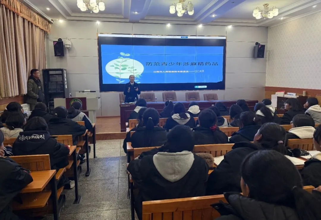市检察院专职委员、三级高级检察官次仁央宗围绕“青少年防范涉精麻药品”主题,献上了一堂活力四射的专题课!她生动地呼吁警惕麻精药品滥用与艾滋病交织叠加的双重毒害,并热情回应学生们提出的各种疑问;针对校园欺凌、性骚扰等学生们普遍关切的问题,检察官逐一细致解答,为青春之路保驾护航!