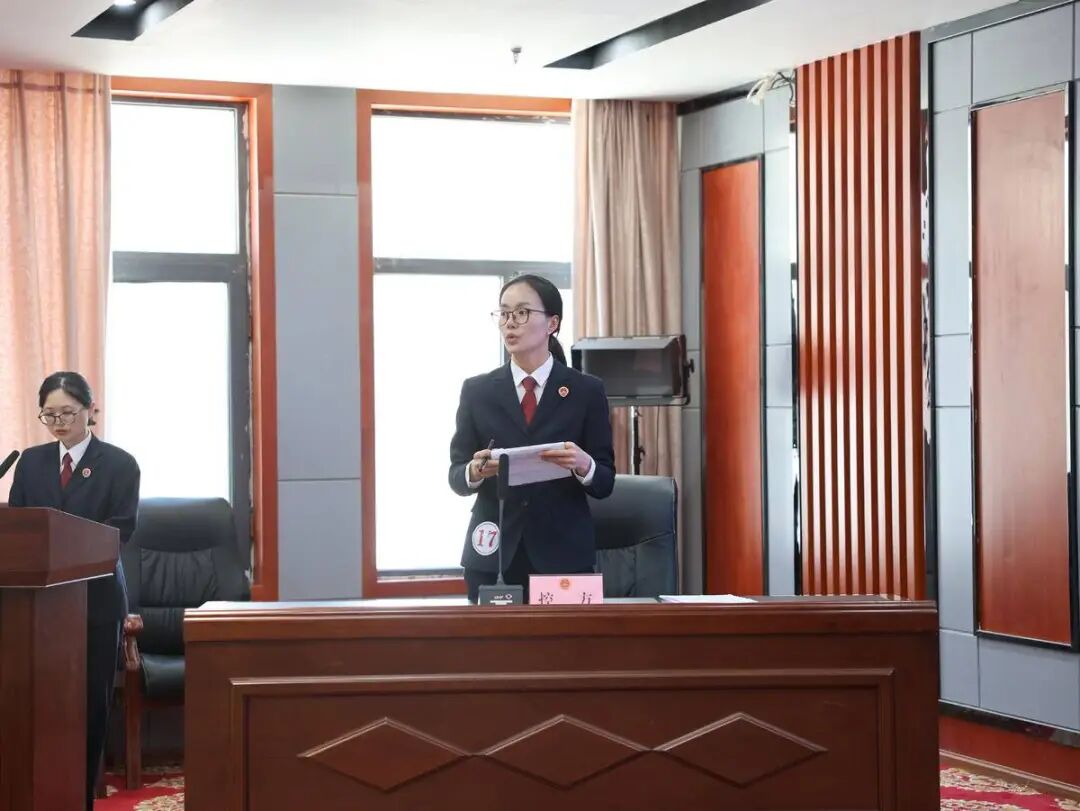 图为决赛现场。决赛共分为6场,每场有2位参赛者,通过抽签方式决定控辩双方。