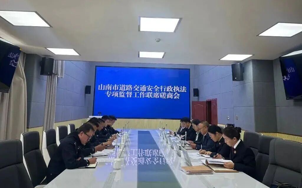 为深入开展道路交通安全领域专项监督,提升执法规范化水平,近日,山南市人民检察院、乃东区人民检察院与市公安局交警支队、乃东区公安局交警大队召开道路交通安全领域行政执法专项监督工作联席磋商会。市人大二级调研员常婵娟出席会议,市检察院党组副书记、常务副检察长汪斌主持会议。