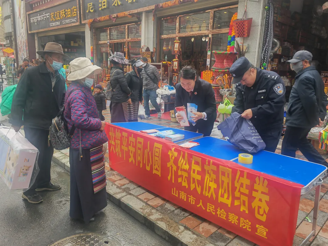 为响应市委政法委《关于开展“9.16平安建设宣传日” 宣传活动的通知》和市直机关工委关于开展“9.16民族团结进步宣传日”的工作要求,9月16日上午,山南市人民检察院组织干警在山南市天马民族风情街开展了以“共筑平安同心圆、齐绘民族团结卷”为主题的法治宣传活动。
