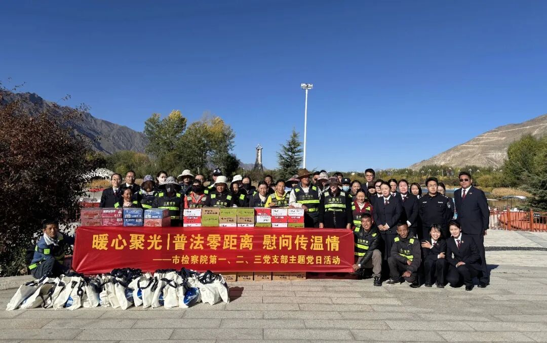 进一步巩固检察建议整改成效,切实发挥党建引领作用,10月16日,山南市人民检察院第一、二、三党支部前往雅砻人民公园联合开展“普法零距离 慰问传温情”主题党日活动,为公园工作人员送上“法治大礼包”“慰问大礼包”,以实际行动践行初心使命,以检察温情传递法治力量。